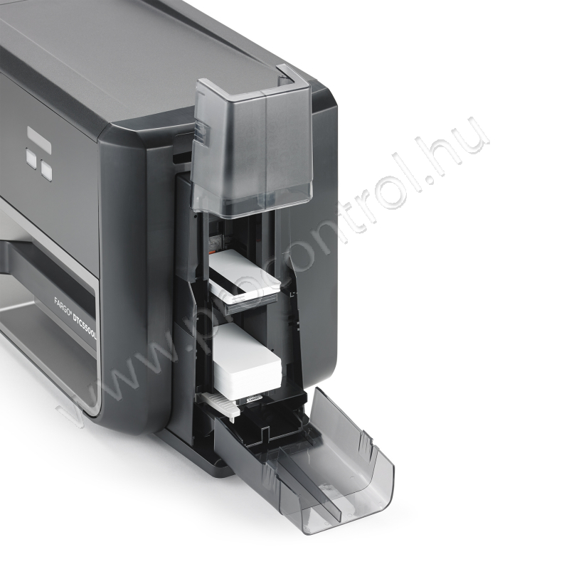 Fargo DTC5500 LMX színes kártyanyomtató kétoldalas lamináló egységgelKurzbeschreibungA DTC5500 LMX nyomtatóval és laminálóval megbízhatóan, nagy mennyiségben és gazdaságosan lehet fényképes és/vagy multifunkcionális azonosító kártyákat előállítani. A vállalatok ezzel a nyomtatóval rutinszerűen állíthatnak elő biztonságos és tartós kártyákat a minőség kockáztatása nélkül. Eigenschaften
