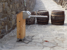 • Állvány, tartóláb acélból, akár egyedi faburkolattal, mellyel az eredeti fali kivitel helyett egylábú forgóvilla lesz